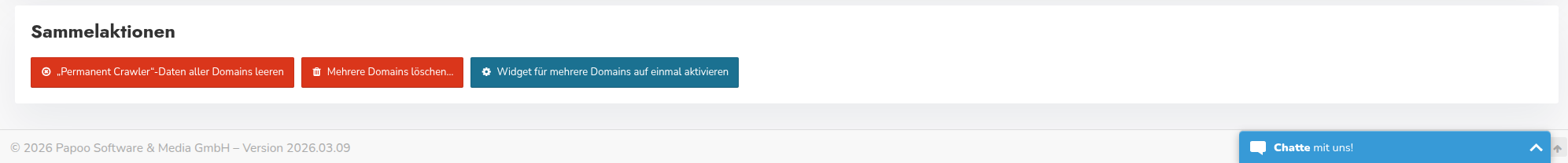 - Widget für mehrere Domains auf einmal aktivieren: Mit diesem Button können Sie die Widgets für eine Liste ausgewählter Domains auf einmal aktivieren.