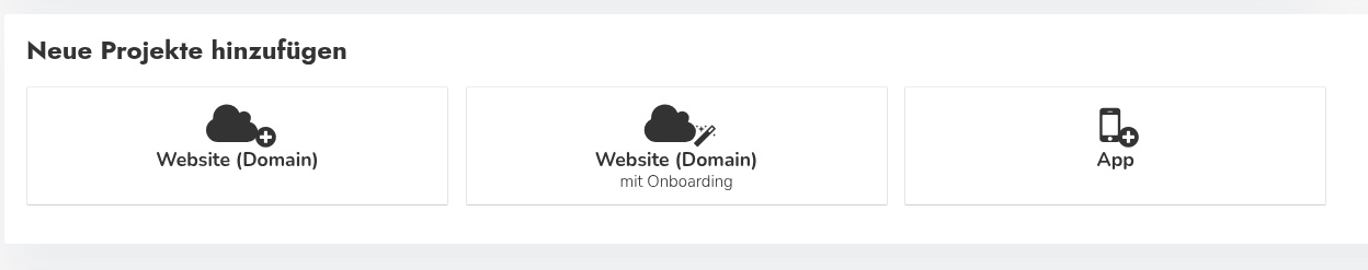 - Website (Domain): Fügt eine neue Website-Domain als Projekt hinzu.